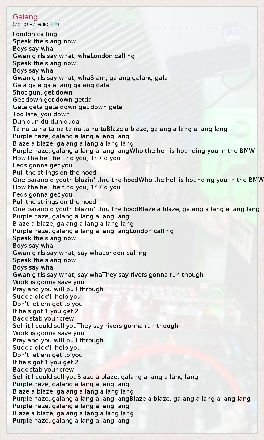 А как ты думаешь, о чем песня "Galang" ?