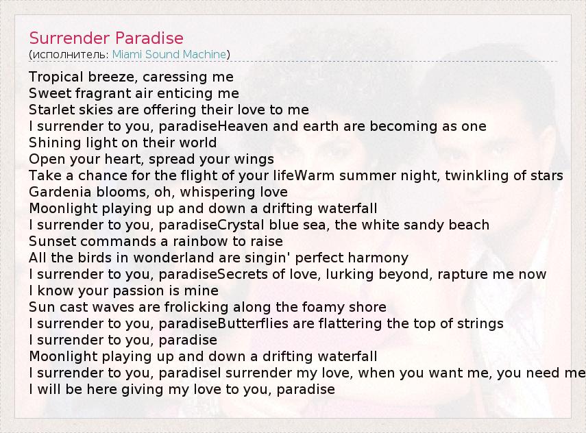 А как ты думаешь, о чем песня "Surrender Paradise" ?