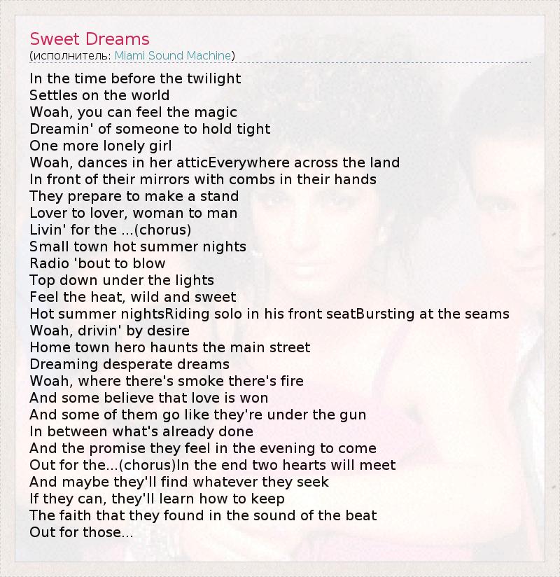 А как ты думаешь, о чем песня "Sweet Dreams" ?