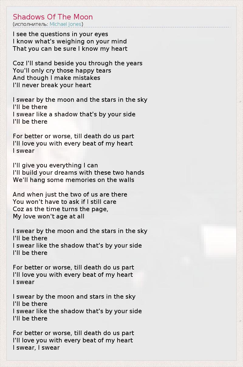 А как ты думаешь, о чем песня "Shadows Of The Moon" ?