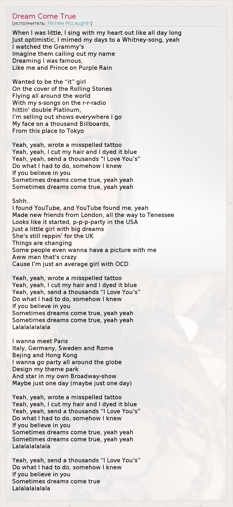 А как ты думаешь, о чем песня "Dream Come True" ?