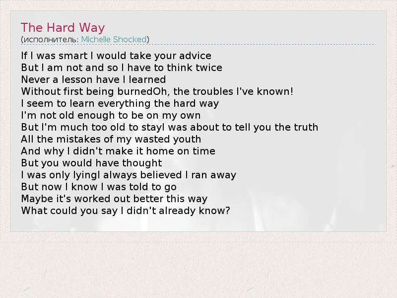 А как ты думаешь, о чем песня "The Hard Way" ?