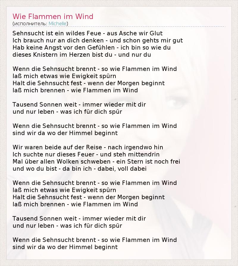 А как ты думаешь, о чем песня "Wie Flammen im Wind" ?