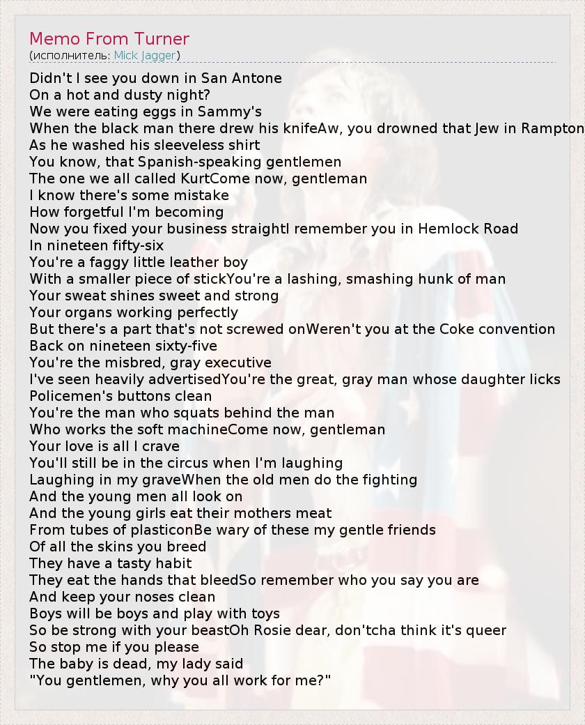 А как ты думаешь, о чем песня "Memo From Turner" ?