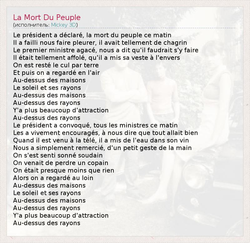 А как ты думаешь, о чем песня "La Mort Du Peuple" ?
