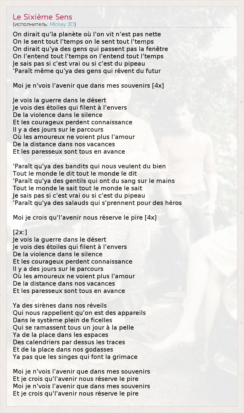 А как ты думаешь, о чем песня "Le Sixième Sens" ?