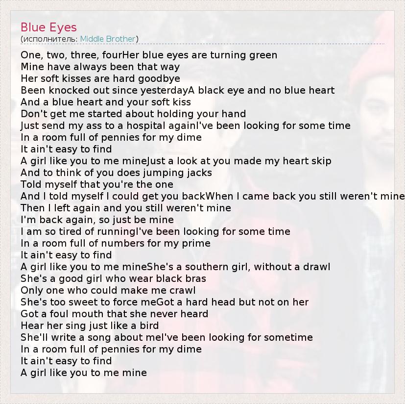 А как ты думаешь, о чем песня "Blue Eyes" ?