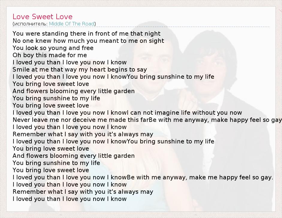 А как ты думаешь, о чем песня "Love Sweet Love" ?