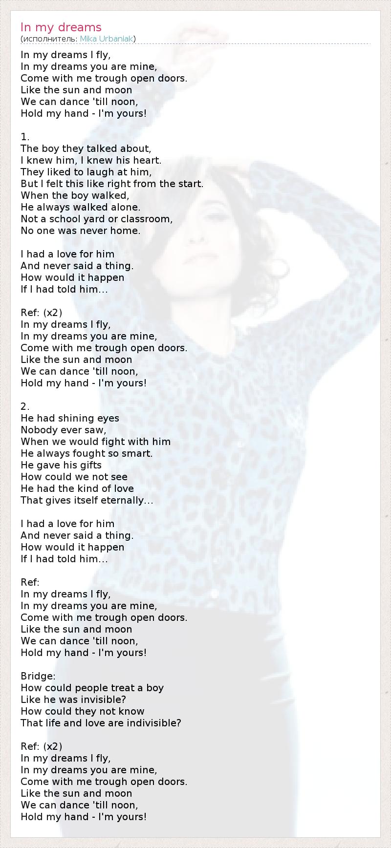 А как ты думаешь, о чем песня "In my dreams" ?