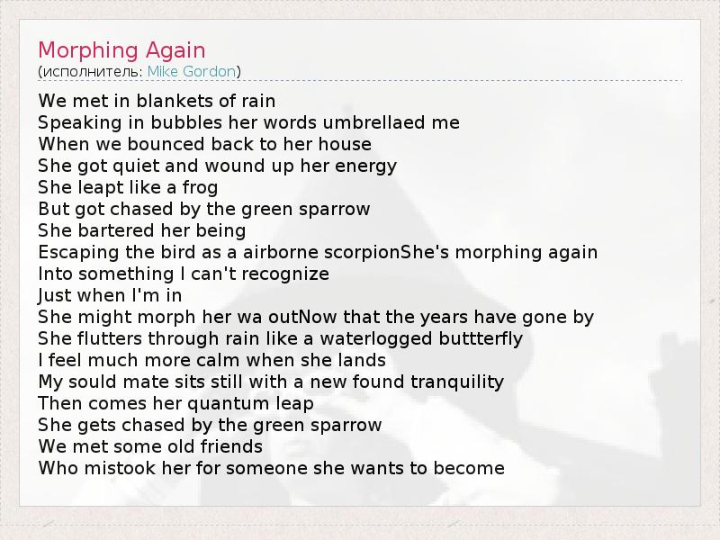 А как ты думаешь, о чем песня "Morphing Again" ?