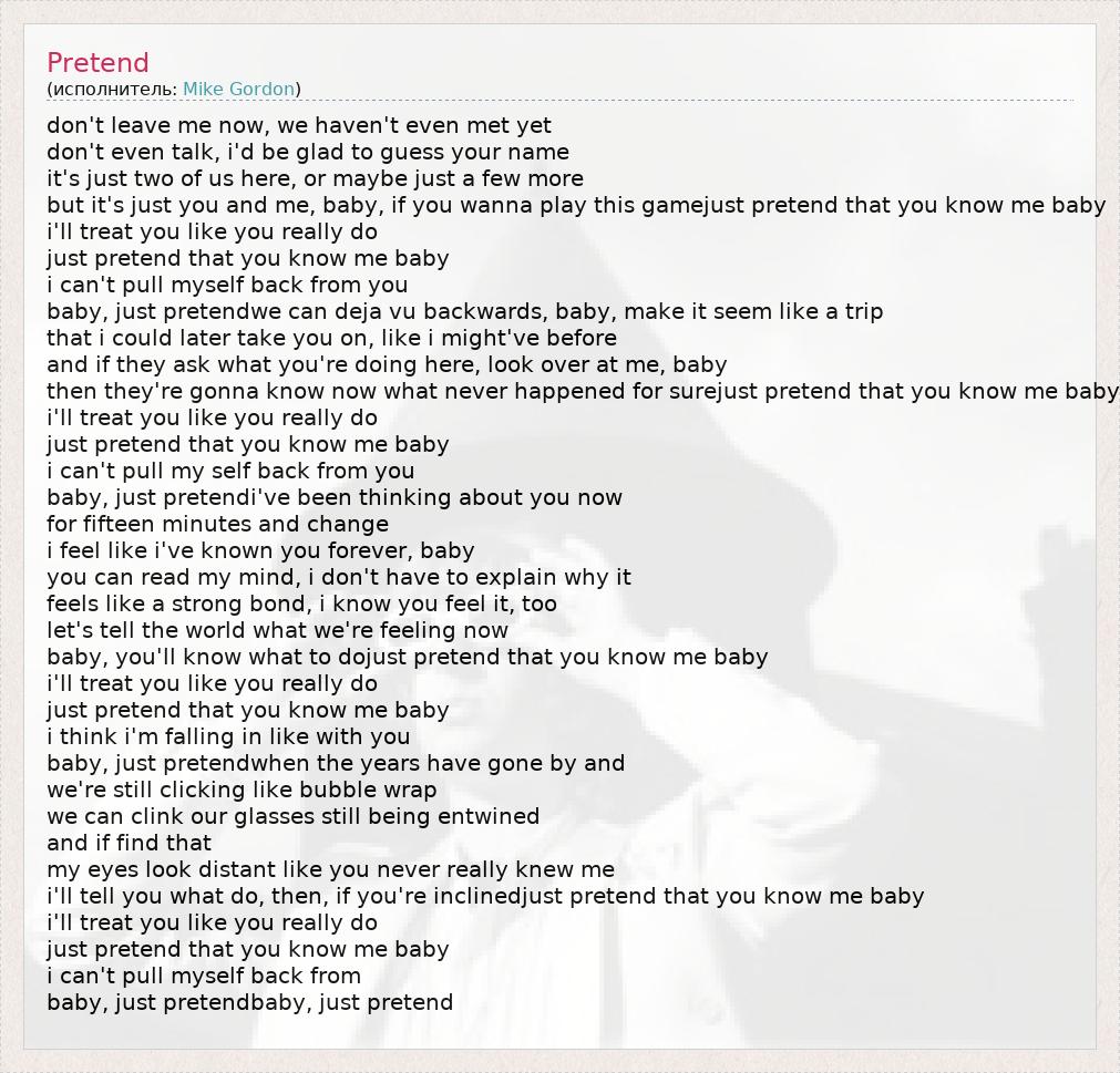 then they're gonna know now what never happened for surejust pretend that you know me baby
