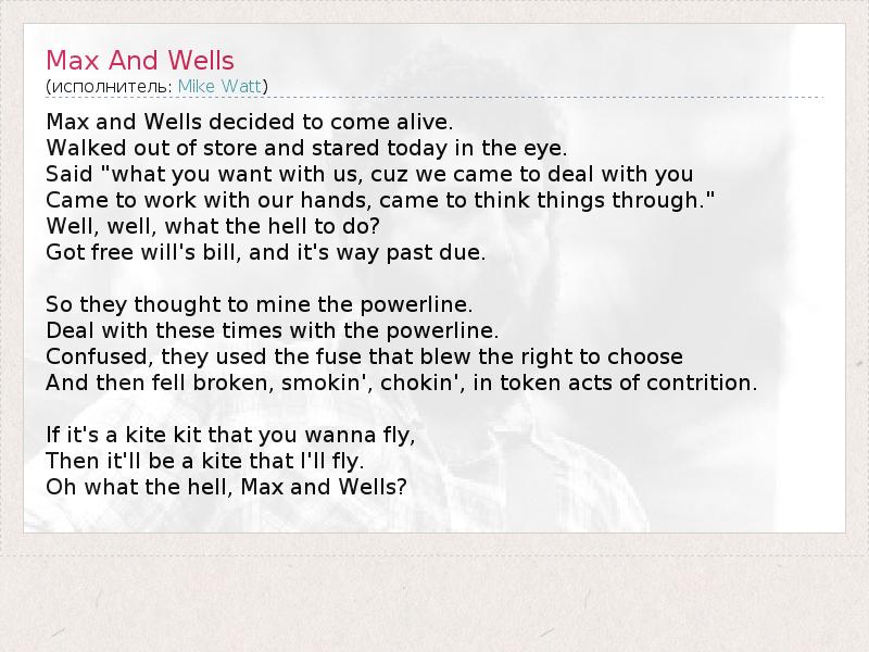 А как ты думаешь, о чем песня "Max And Wells" ?