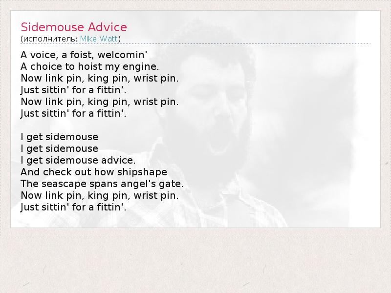 А как ты думаешь, о чем песня "Sidemouse Advice" ?