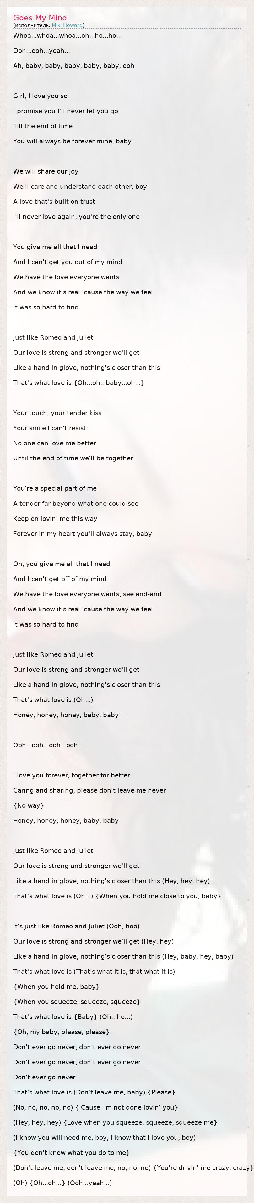А как ты думаешь, о чем песня "Goes My Mind" ?