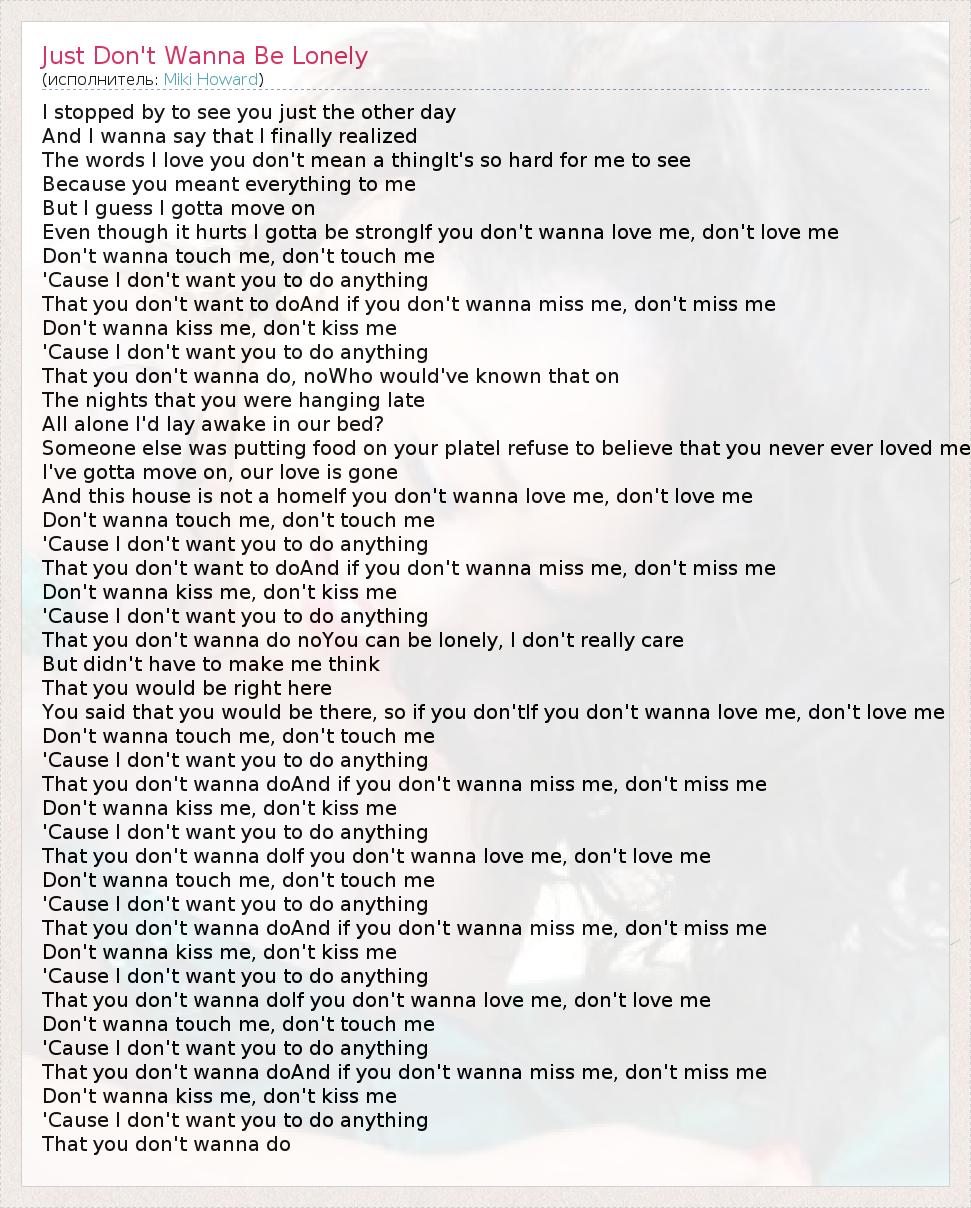 ГлавнаяИсполнителиMiki HowardJust Don't Wanna Be Lonely