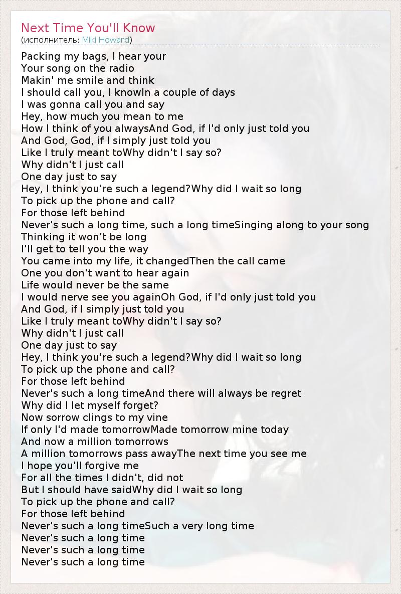 А как ты думаешь, о чем песня "Next Time You'll Know" ?