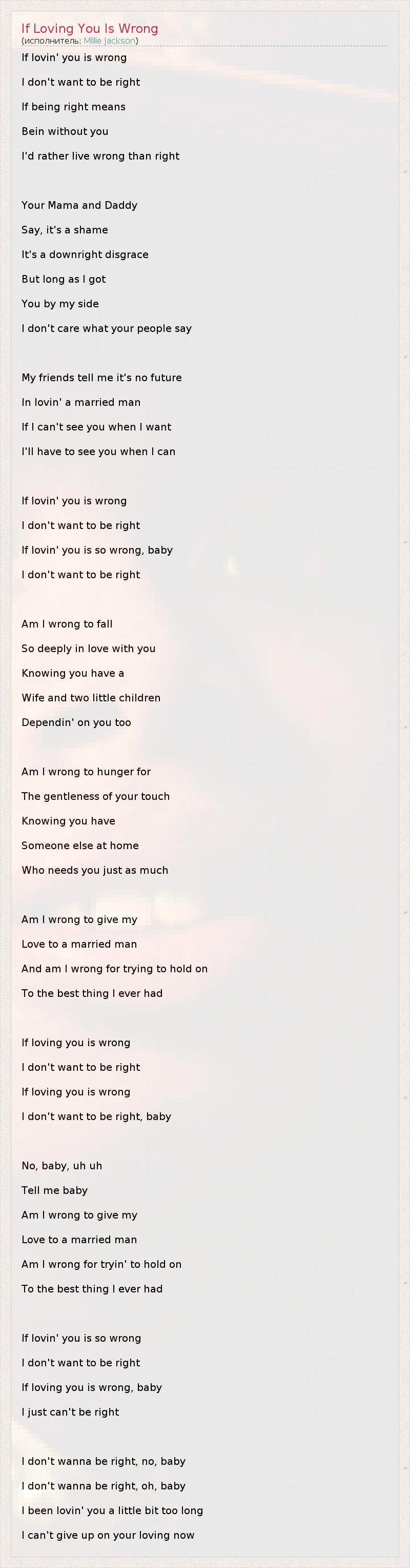 А как ты думаешь, о чем песня "If Loving You Is Wrong" ?