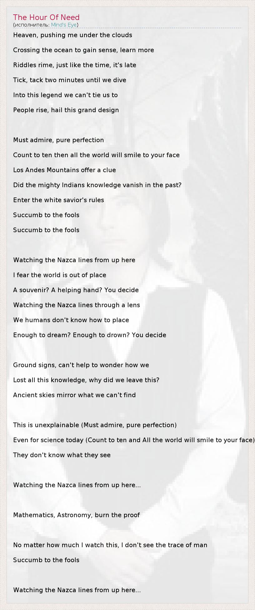 А как ты думаешь, о чем песня "The Hour Of Need" ?