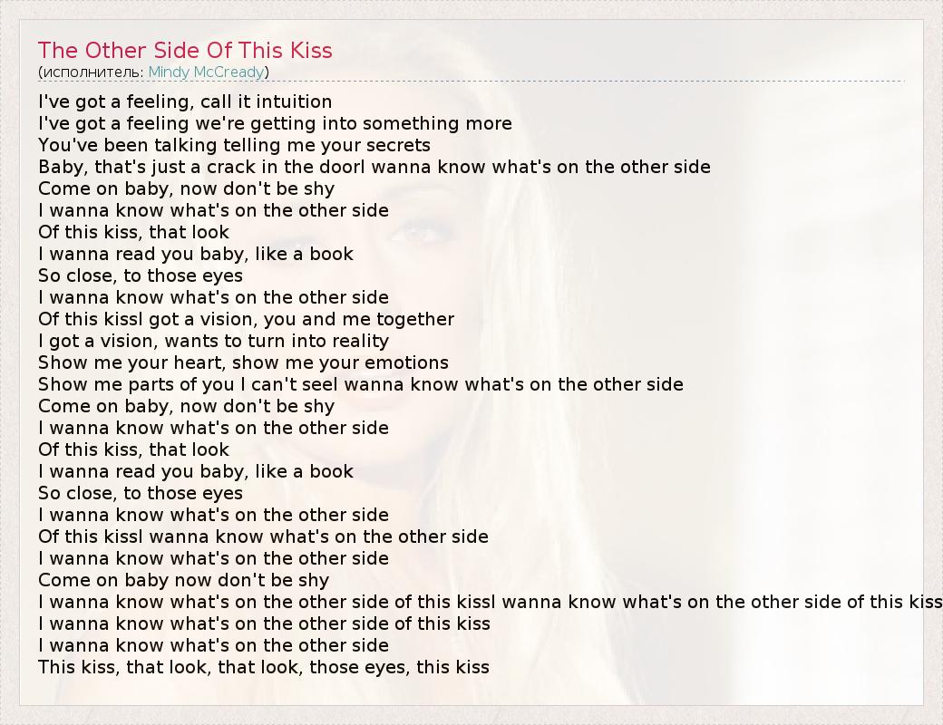 А как ты думаешь, о чем песня "The Other Side Of This Kiss" ?