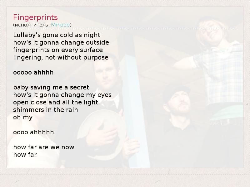 А как ты думаешь, о чем песня "Fingerprints" ?
