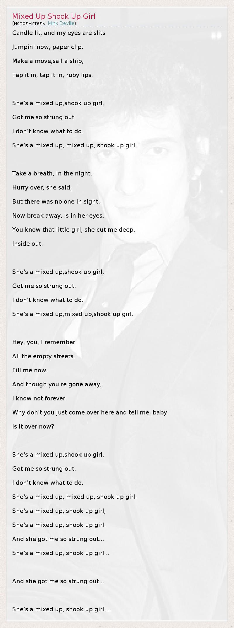 А как ты думаешь, о чем песня "Mixed Up Shook Up Girl" ?
