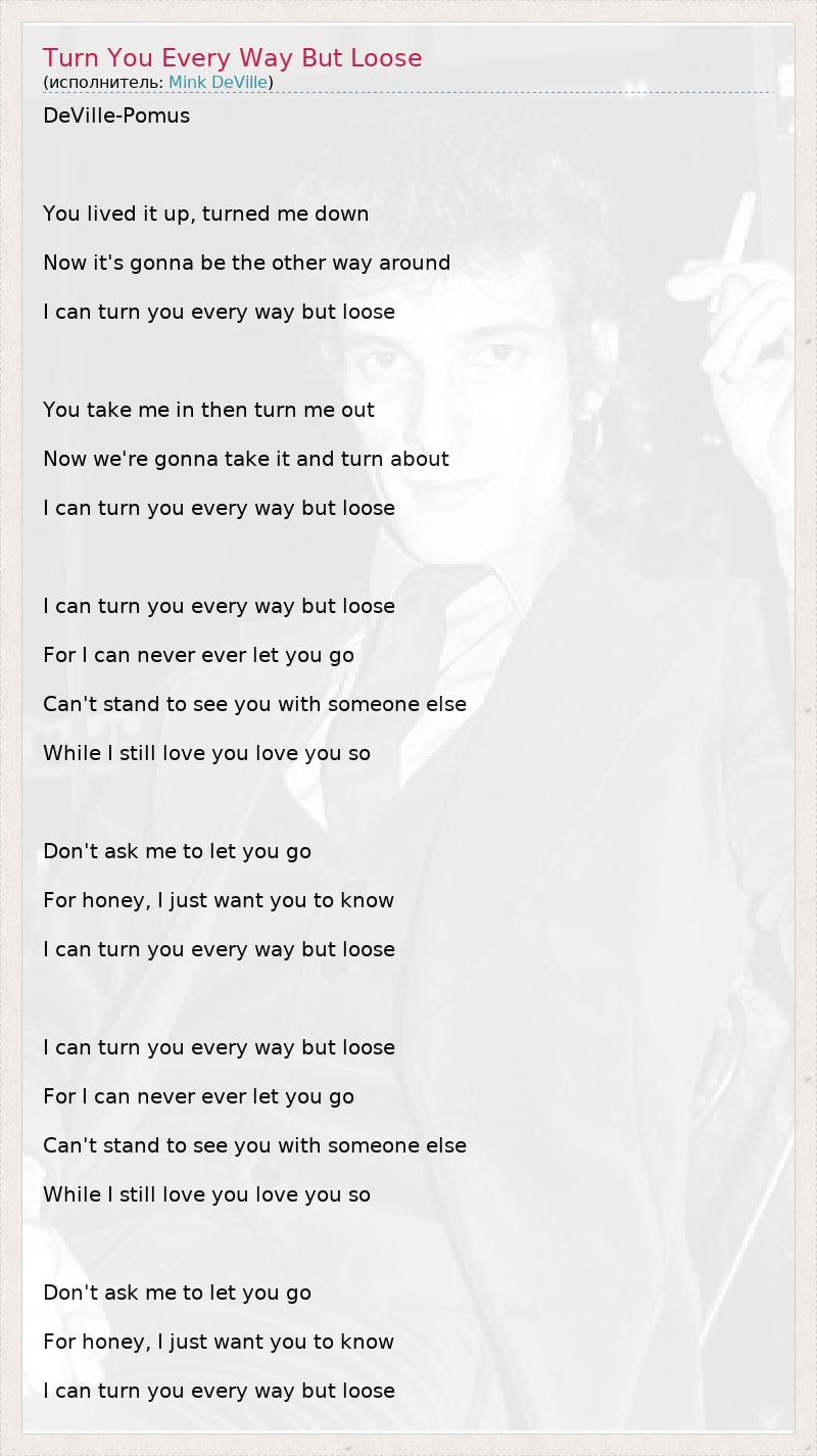 А как ты думаешь, о чем песня "Turn You Every Way But Loose" ?