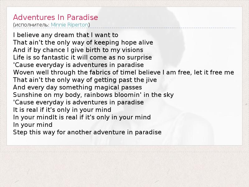 А как ты думаешь, о чем песня "Adventures In Paradise" ?