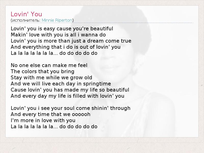 А как ты думаешь, о чем песня "Lovin' You" ?