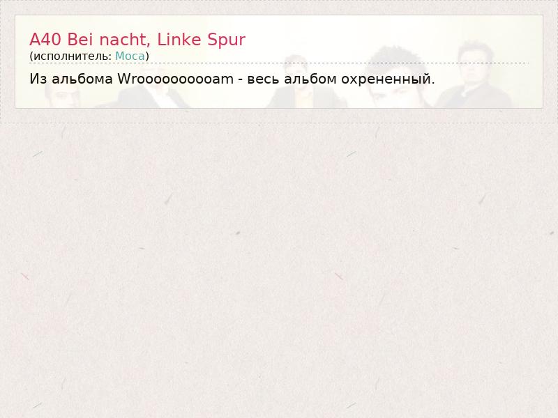 ГлавнаяИсполнителиMocaA40 Bei nacht, Linke Spur