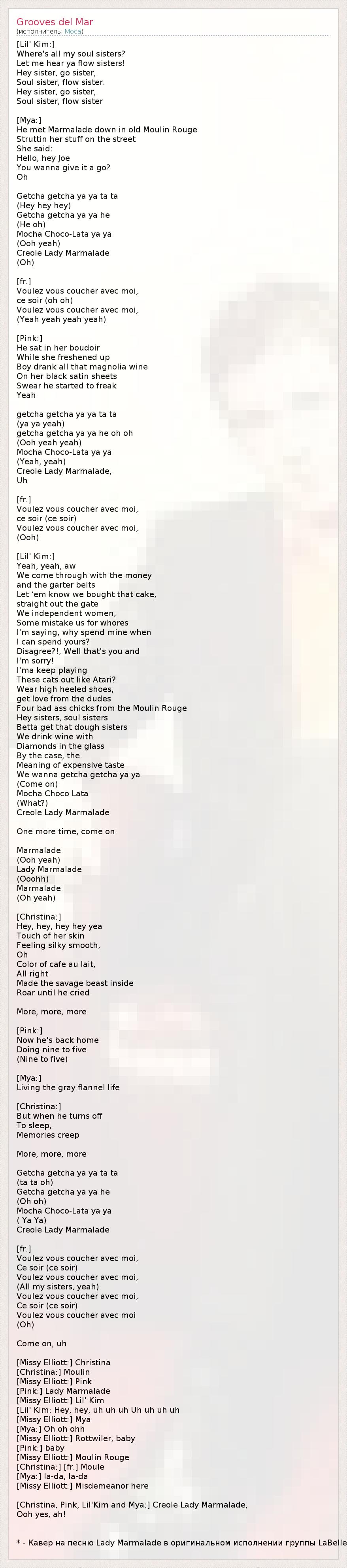 [Christina, Pink, Lil’ Kim и Mya:] Креолка Леди Мармелад