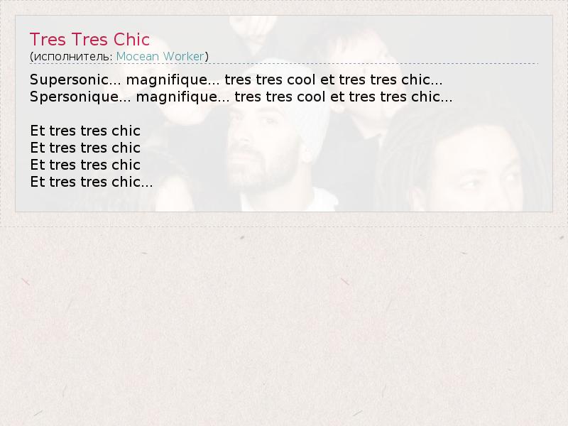 А как ты думаешь, о чем песня "Tres Tres Chic" ?