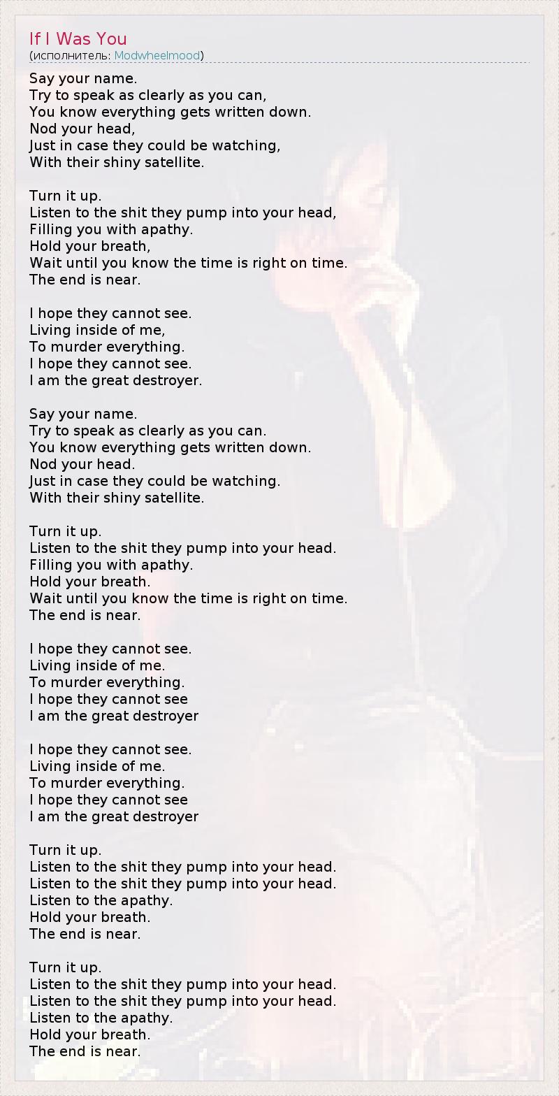 А как ты думаешь, о чем песня "If I Was You" ?