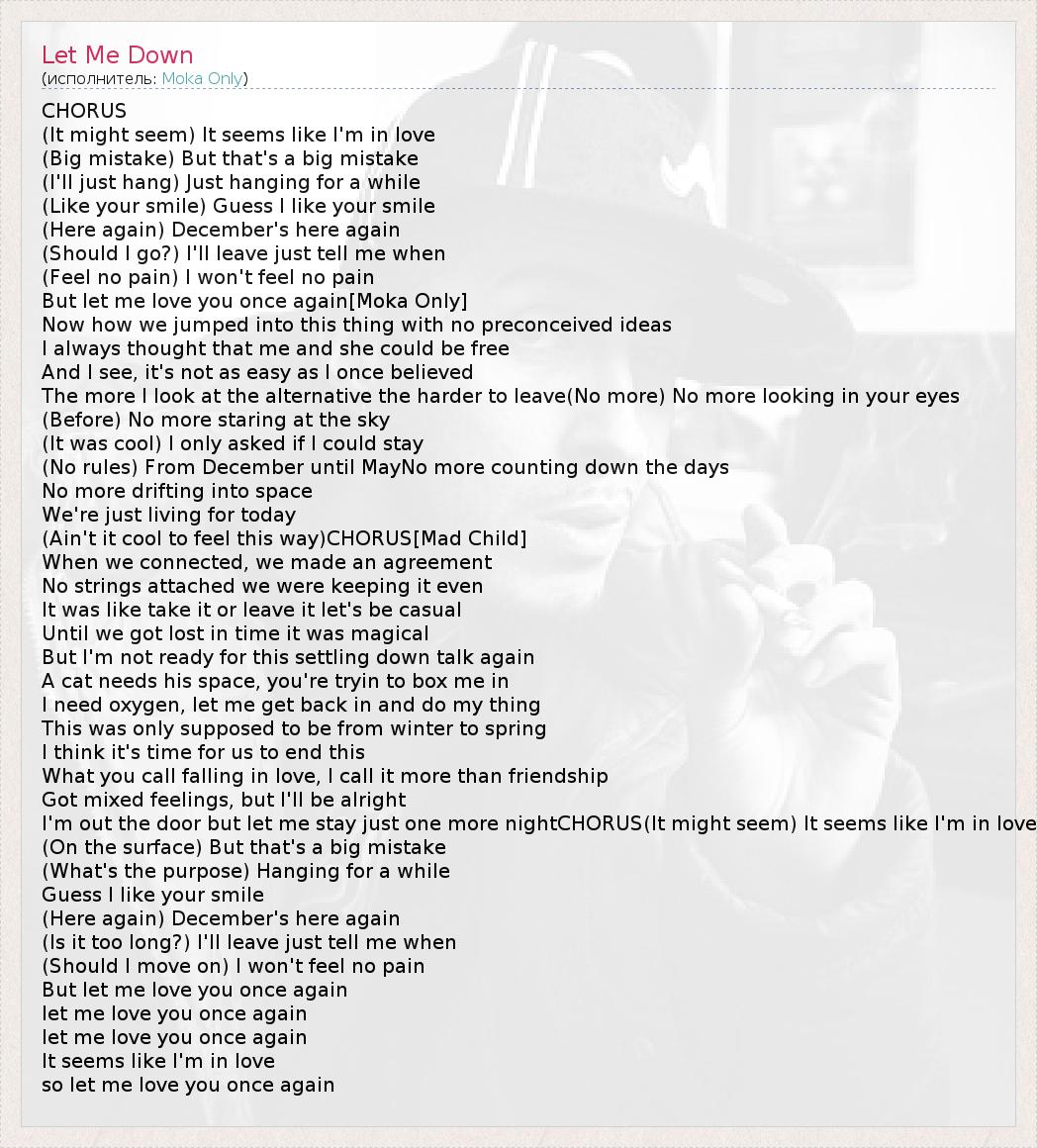 А как ты думаешь, о чем песня "Let Me Down" ?