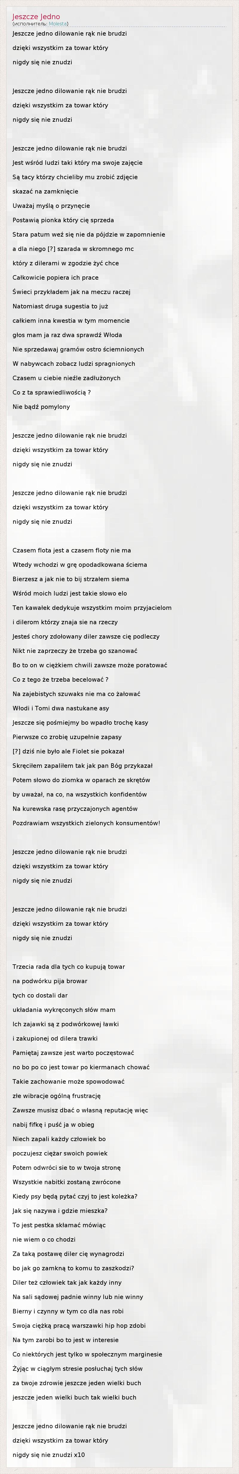 А как ты думаешь, о чем песня "Jeszcze Jedno" ?