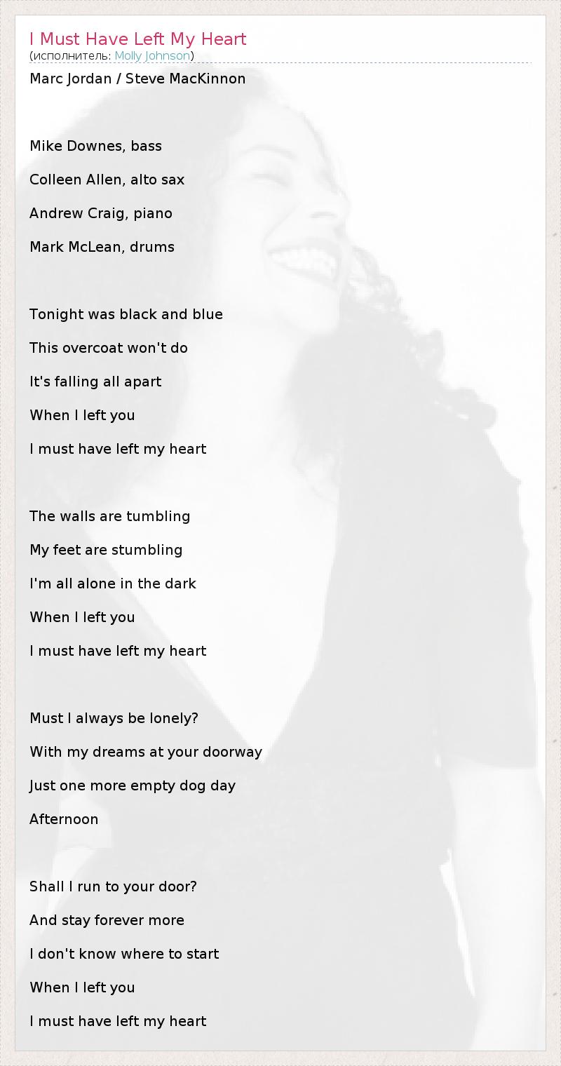 ГлавнаяИсполнителиMolly JohnsonI Must Have Left My Heart