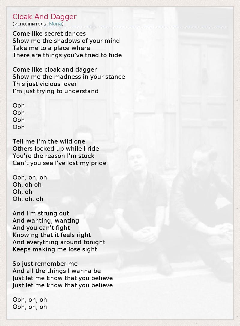 А как ты думаешь, о чем песня "Cloak And Dagger" ?