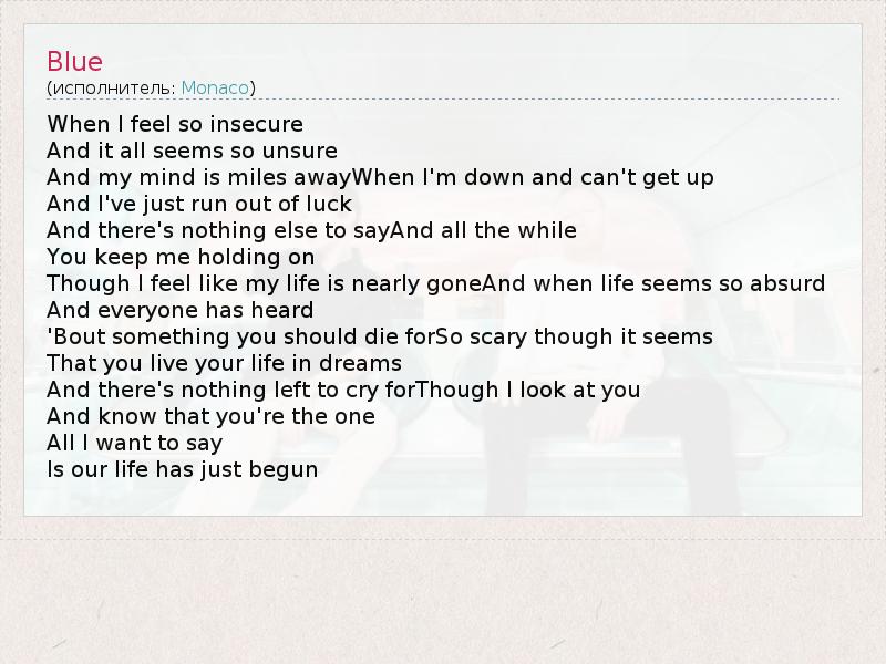 А как ты думаешь, о чем песня "Blue" ?