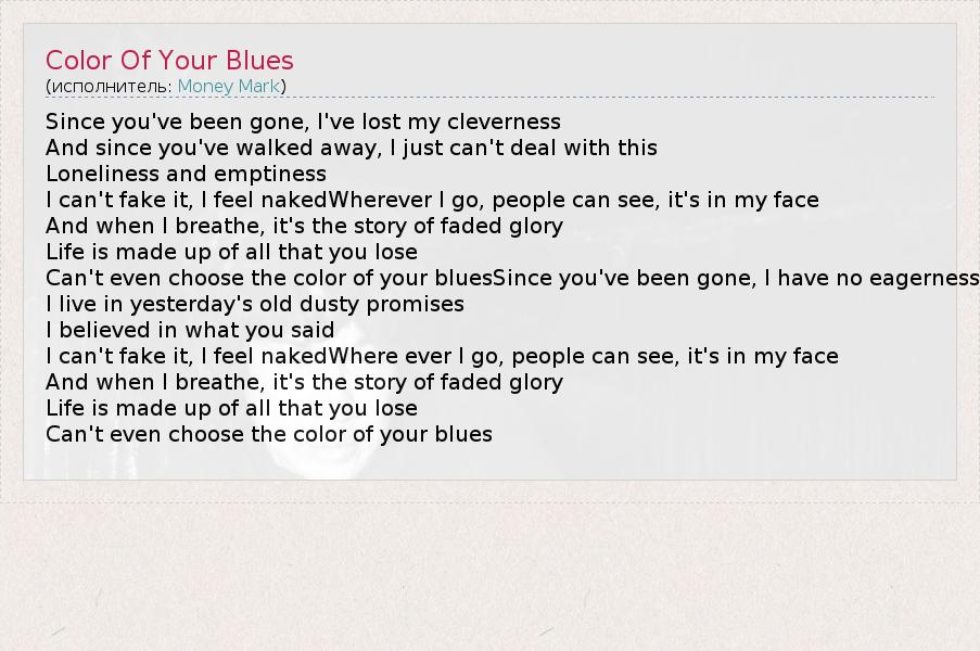 А как ты думаешь, о чем песня "Color Of Your Blues" ?