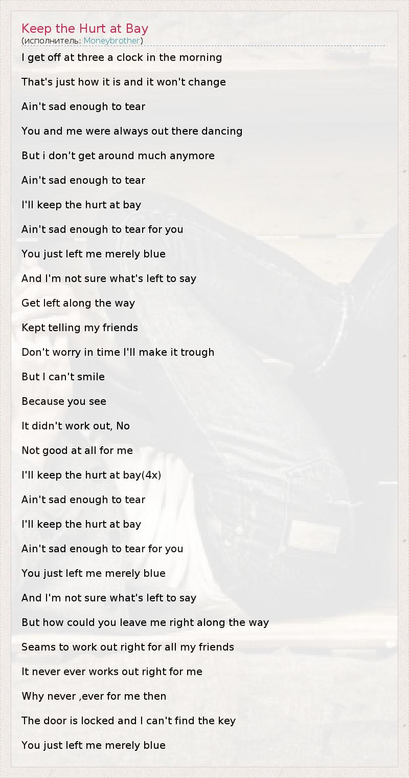 А как ты думаешь, о чем песня "Keep the Hurt at Bay" ?