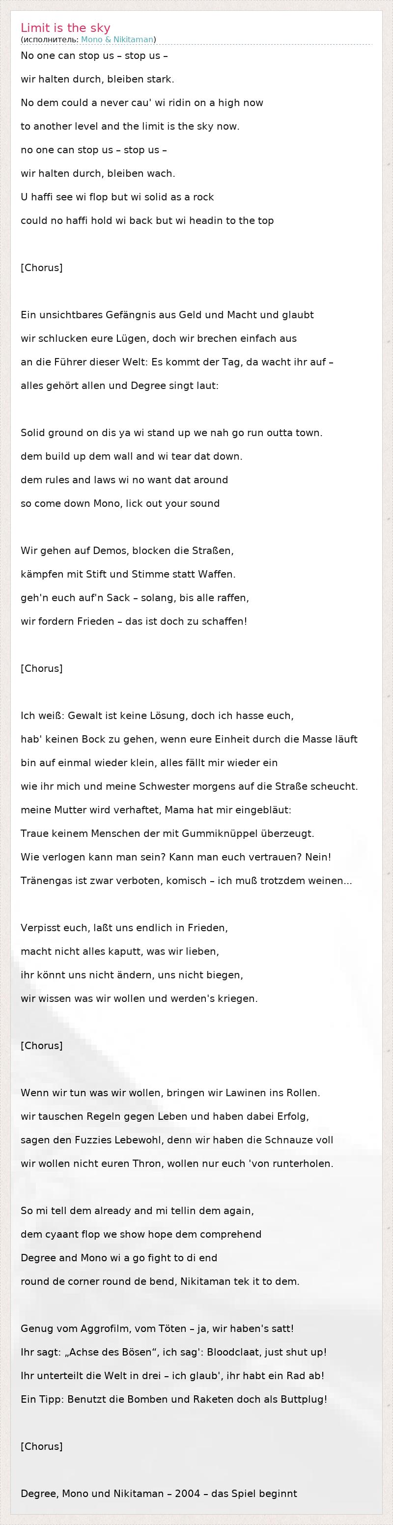 А как ты думаешь, о чем песня "Limit is the sky" ?