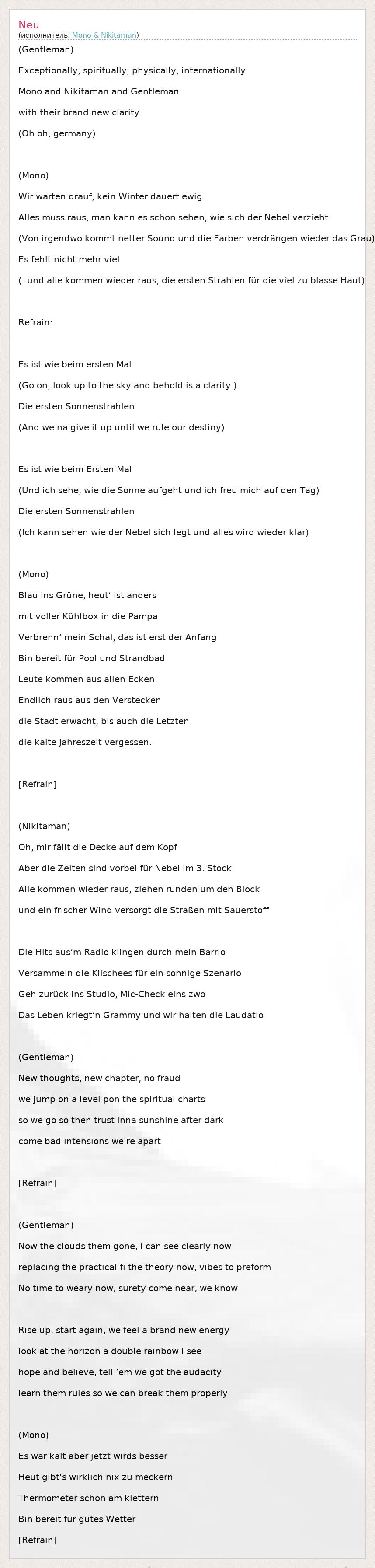 А как ты думаешь, о чем песня "Neu" ?