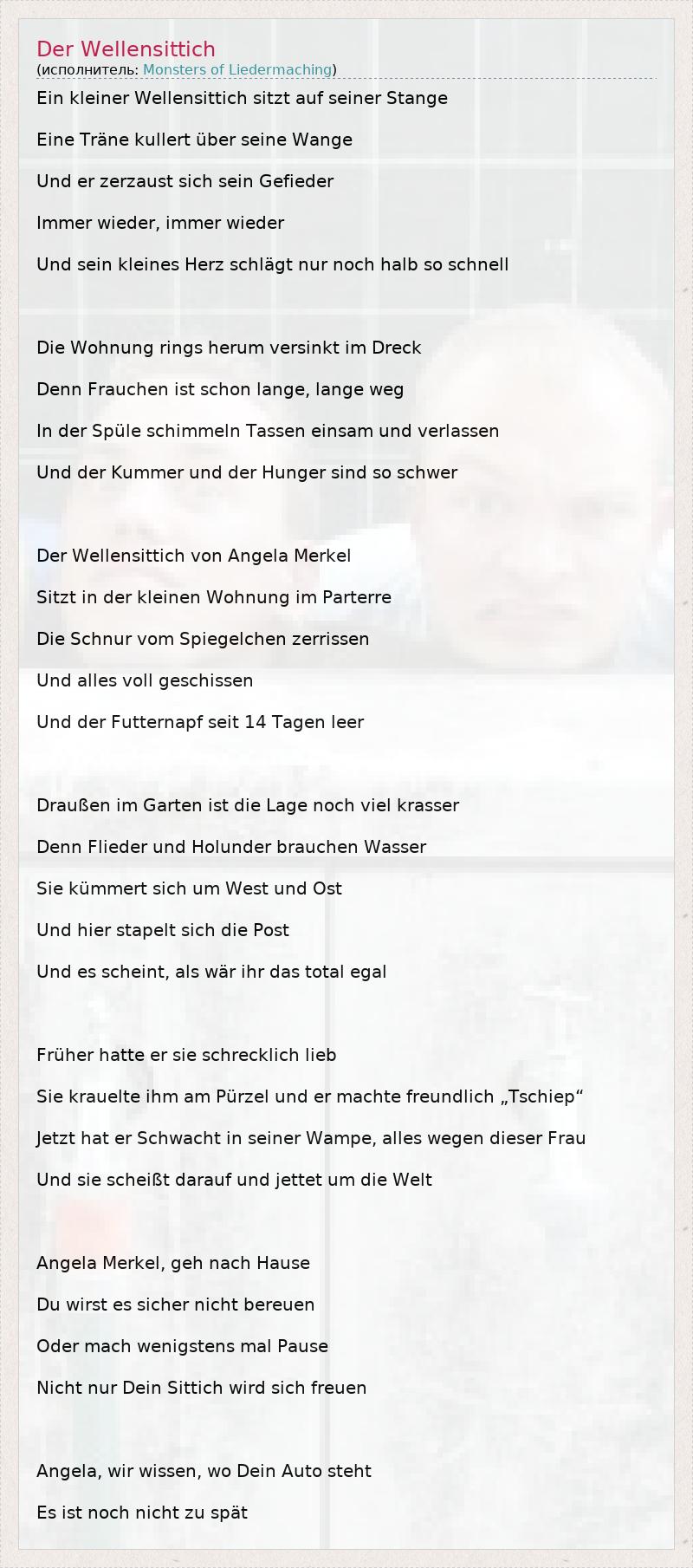 А как ты думаешь, о чем песня "Der Wellensittich" ?