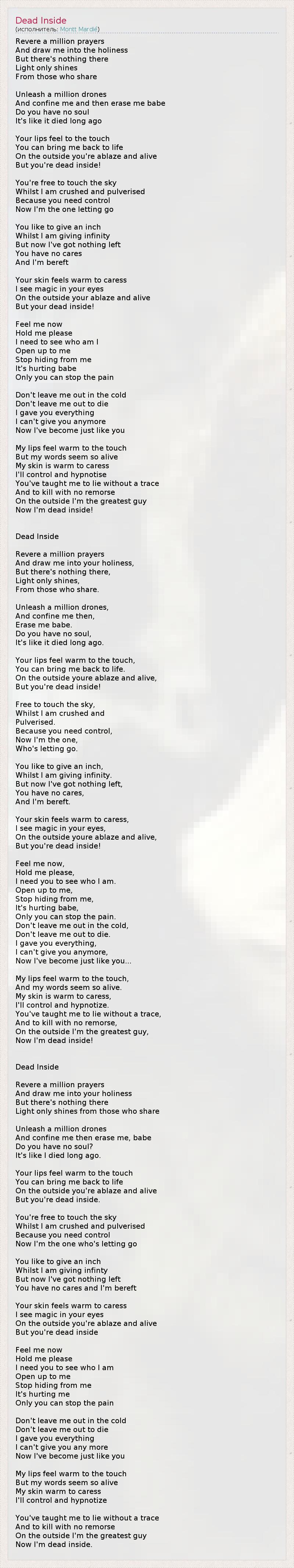 А как ты думаешь, о чем песня "Dead Inside" ?