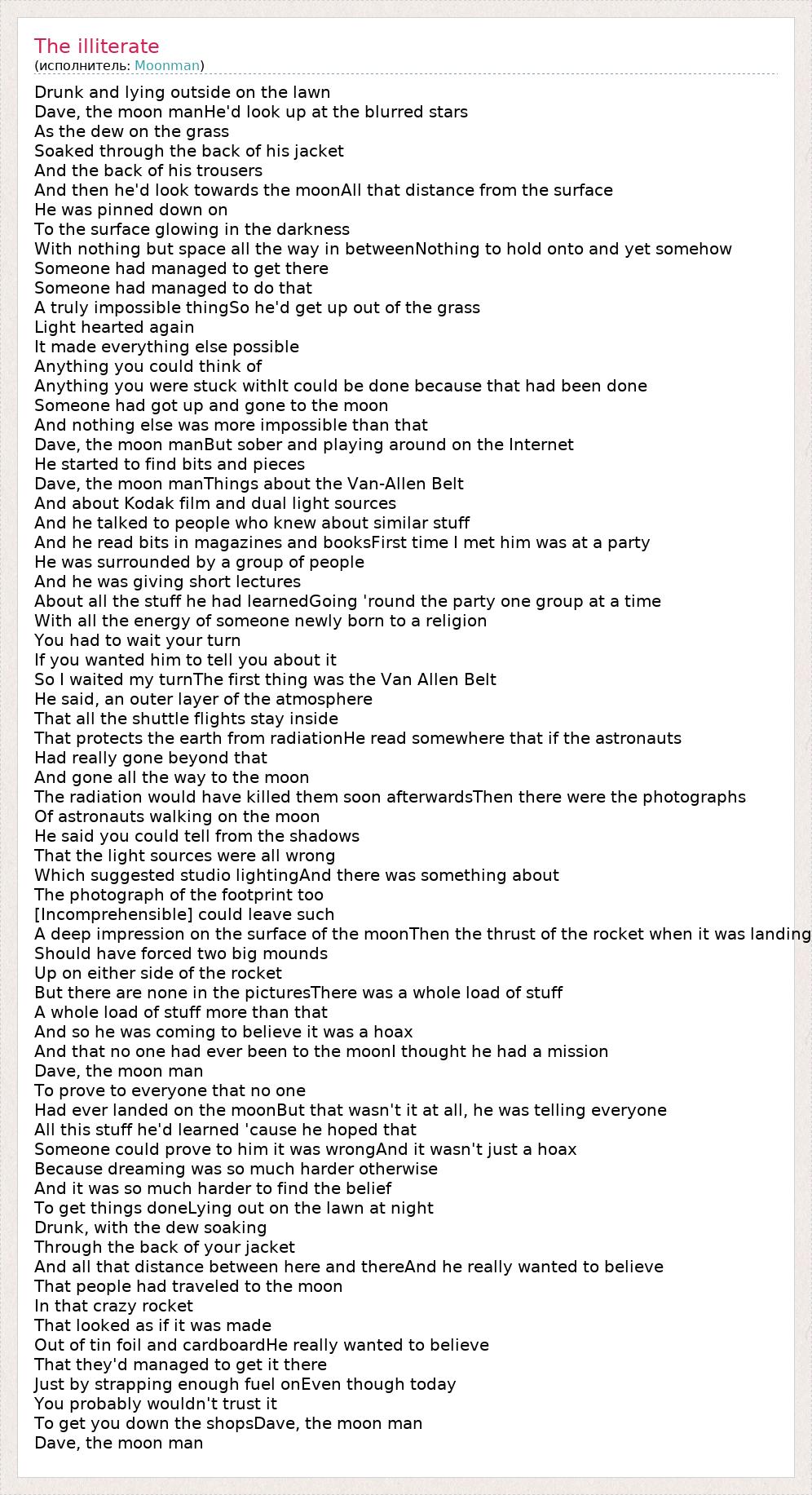 Had ever landed on the moonBut that wasn't it at all, he was telling everyone