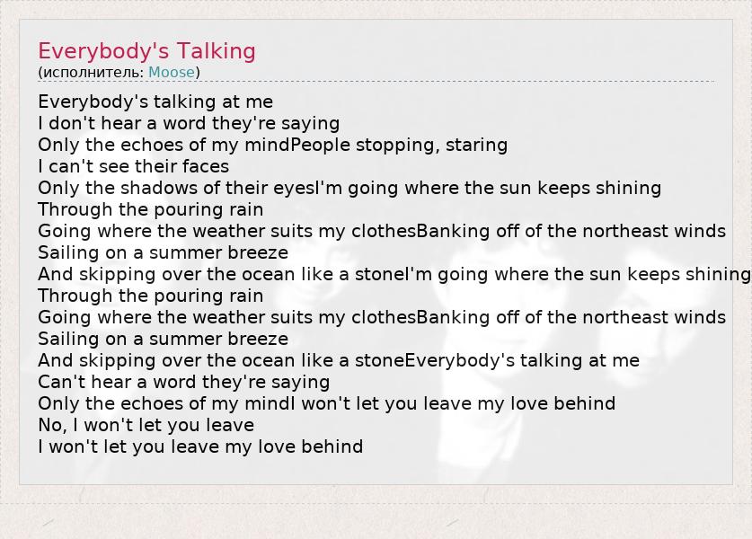 А как ты думаешь, о чем песня "Everybody's Talking" ?