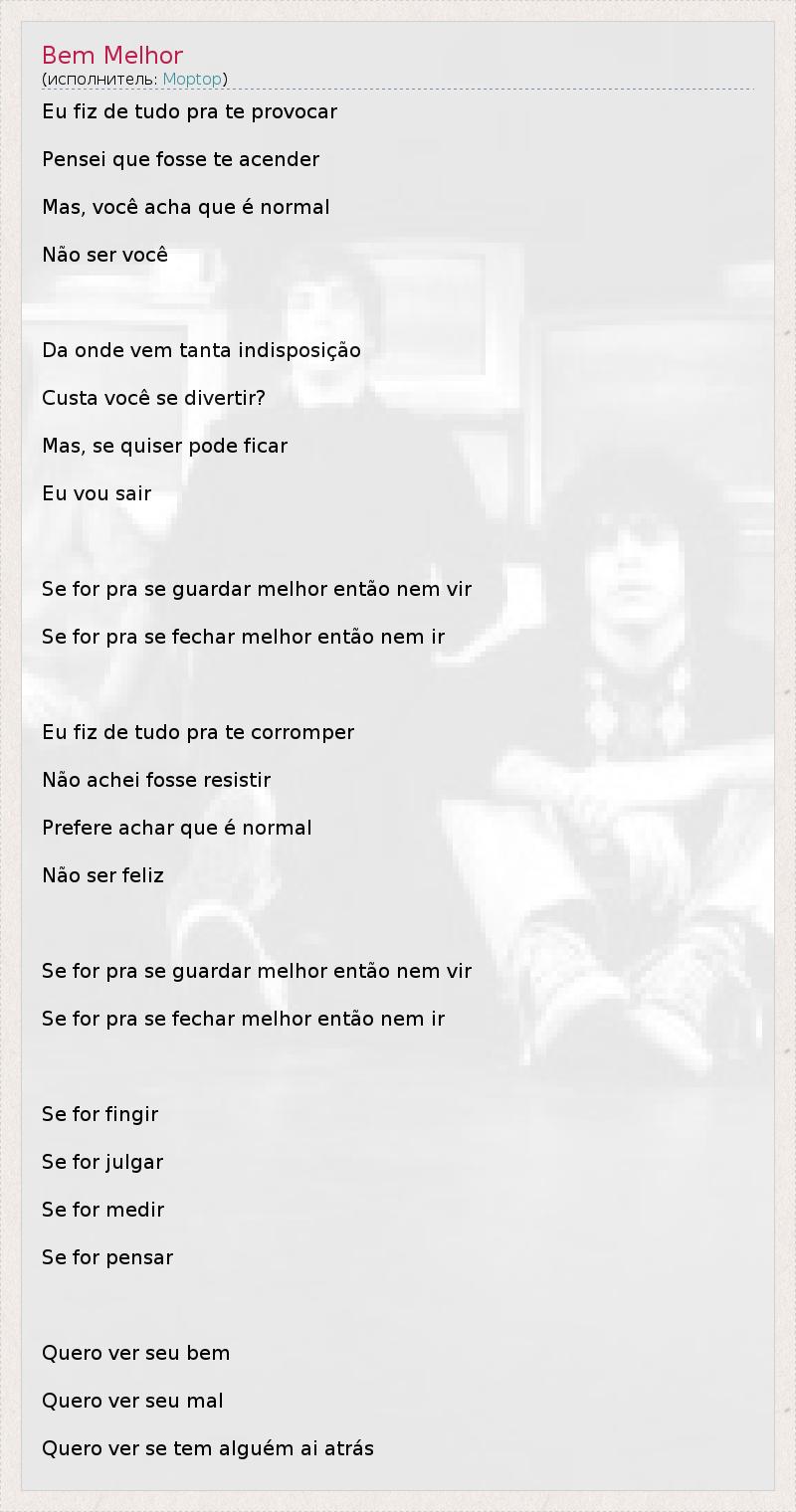 А как ты думаешь, о чем песня "Bem Melhor" ?