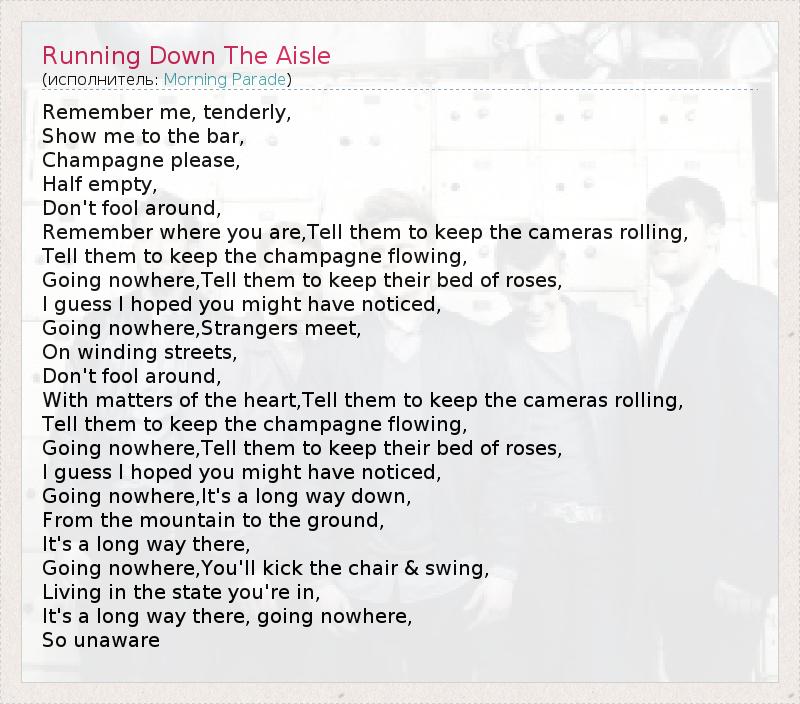 А как ты думаешь, о чем песня "Running Down The Aisle" ?