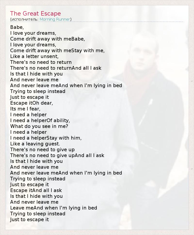 А как ты думаешь, о чем песня "The Great Escape" ?