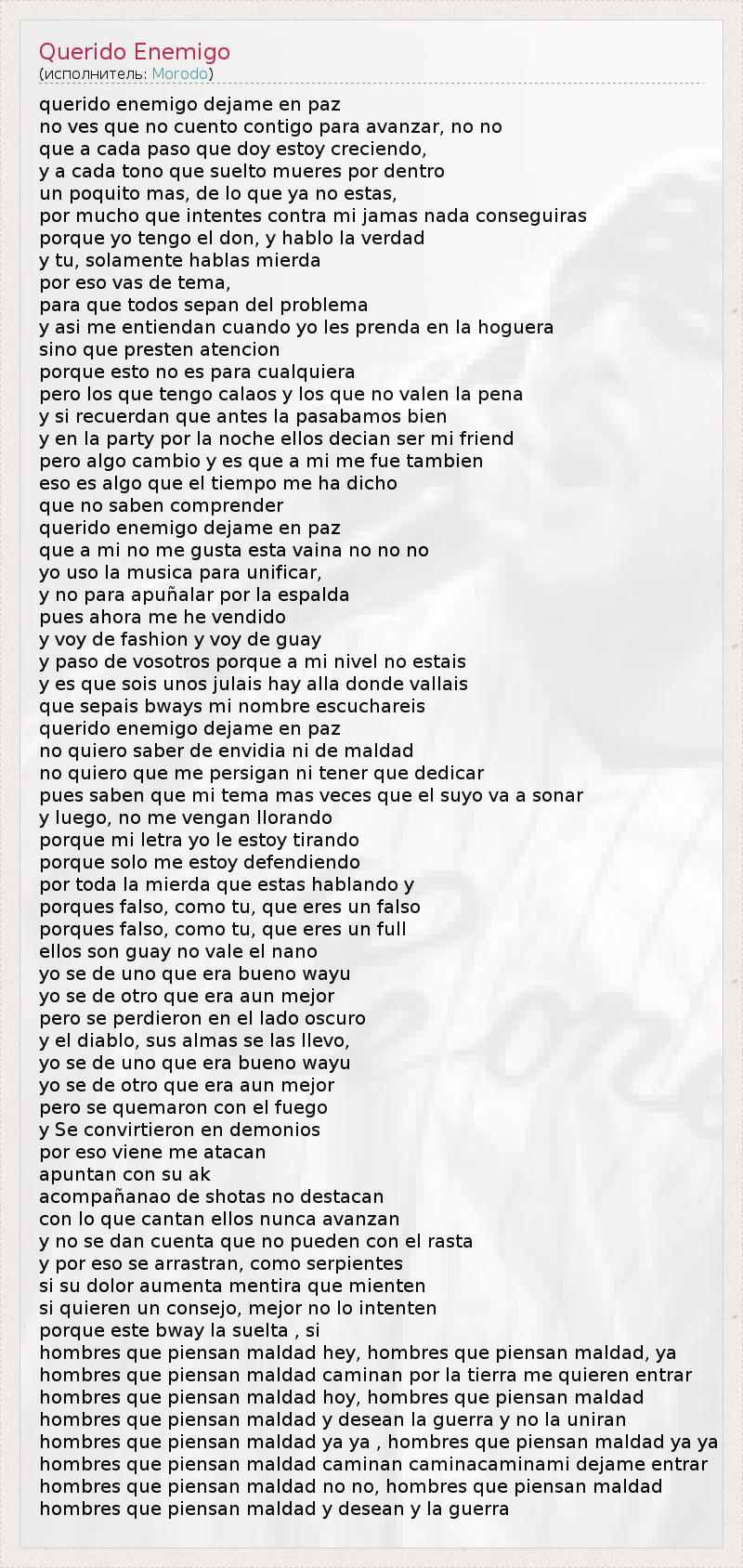 А как ты думаешь, о чем песня "Querido Enemigo" ?