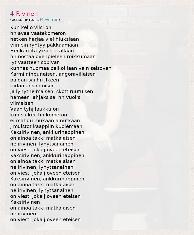 А как ты думаешь, о чем песня "4-Rivinen" ?